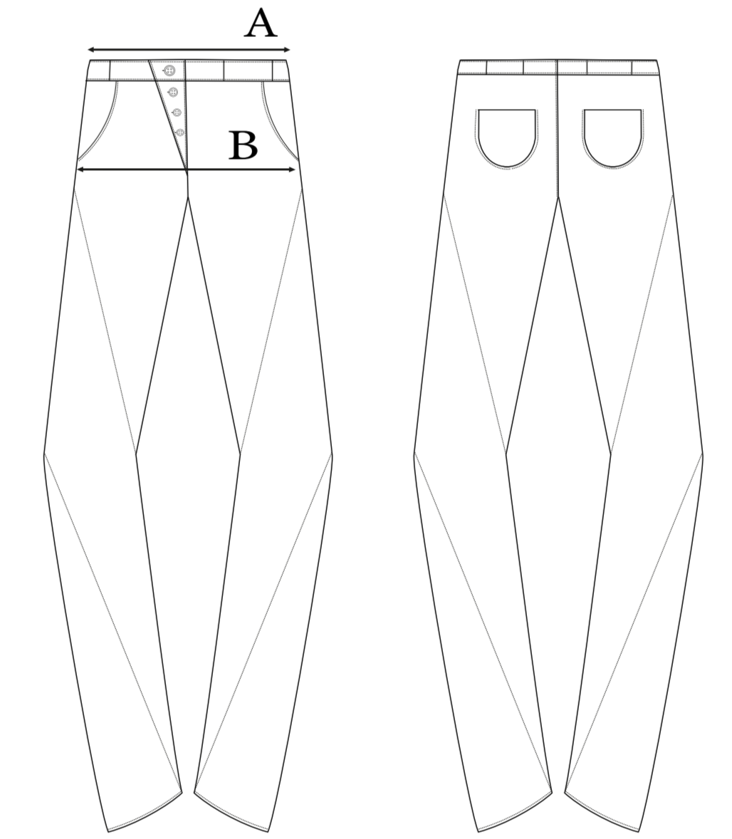 Изделие дополнено декоративными отстрочками по всей длине штанин, подкладка карманов выполнены из основной ткани, скошенный гульфик, застегивающийся на пуговицы.