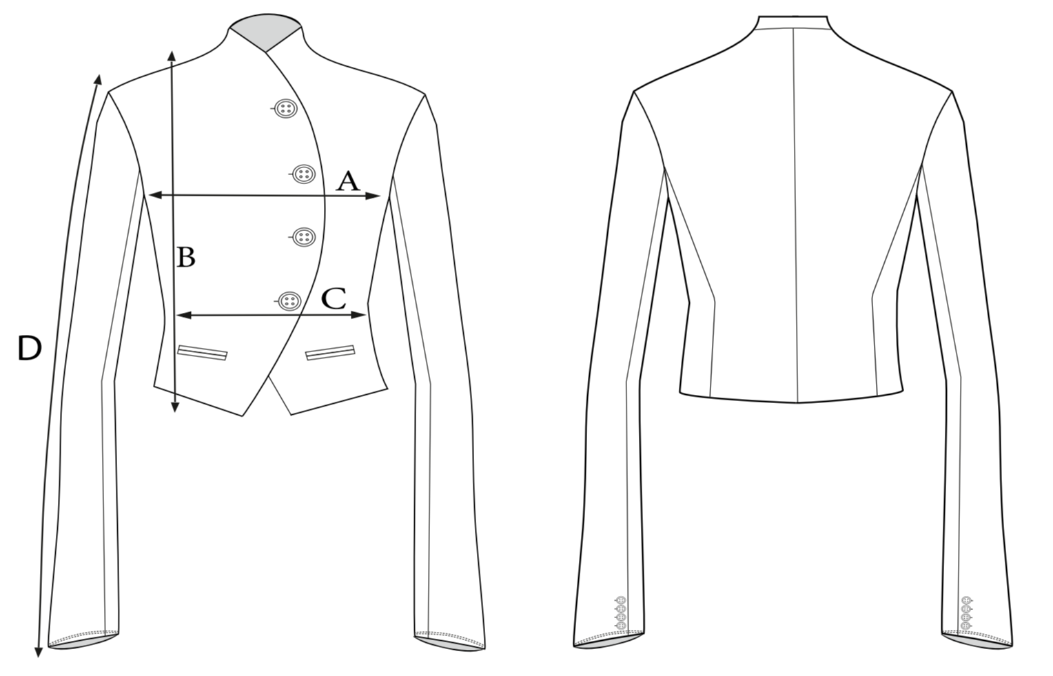 • Рабочие пуговицы на манжетах. • Два декоративных кармана спереди.