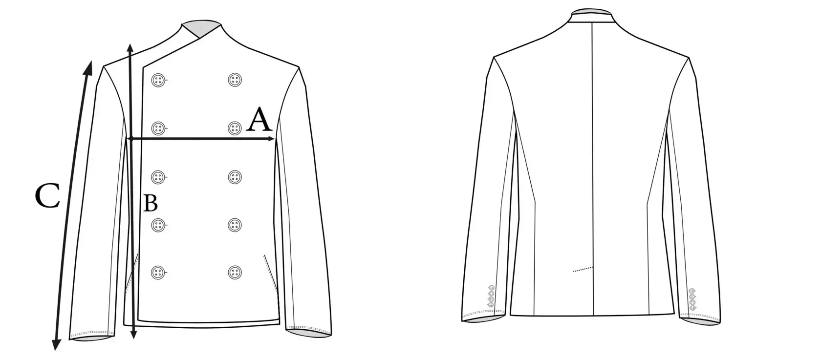 • Рабочие пуговицы на манжетах. • Шлица. • Два кармана спереди.